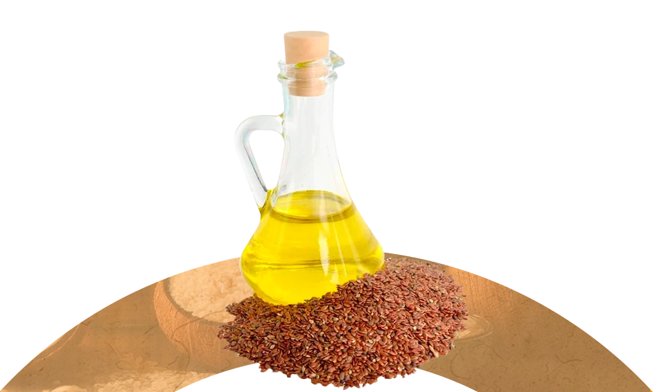 Aceite obtenido mediante prensado en frio de las semillas del lino, es de color amarillo oscuro y es de los aceites vegetales con más cantidad de Omega 3, con un 45 % o más de éste, contiene también Omega 6 y 9.